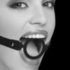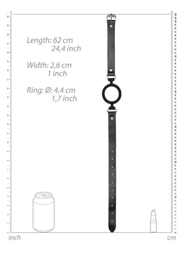 Jedwabiście gładki i w pełni regulowany silikonowy knebel z okrągłym pierścień idealnie nadaje się do wygodnego, a jednocześnie niezawodnego zniewolenia. Rozciągaj i otwieraj wargi podległej osobie, zyskując pełen wachlarz możliwości zabawy, dzięki temu pięknie wykonanemu urządzeniu! Okrągły pierścień wykonany z medycznego silikonu, niezawierającego ftalanów jest sztywny, ale delikatnie układa się na zębach. Skórzany pasek jest w pełni regulowany i wyposażony w mocną metalową klamrę, zapewniającą mocne ściśnięcie. Pasek okrągłego pierścienia ma całkowitą długość 57 cm (22,5 cali). Wewnętrzna średnica rozciągliwego silikonowego pierścienia wynosi 4 cm (1,6 cala).