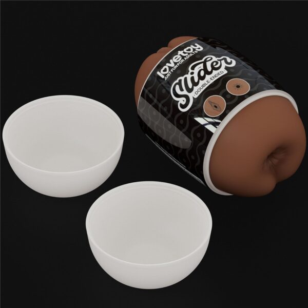 Dwustronny masturbator oferuje dwie opcje zabawy – realistyczną pochwę i ciasny anus.