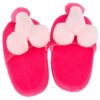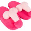 Przytulne, różowe kapcie z pluszu z przyczepionym penisem i jądrami na górze. Jeden rozmiar pasuje na wszystkie od 37 do 40. 100% poliester, podszewka: 100% polipropylen.