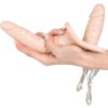 Strap-on/string z podwójnym wibratorem do lesbijskich pchnięć i peggingu z nim, podczas gdy sama użytkowniczka jest rozpieszczana przez wibracje. Masywne wibratory w penisie-naturalny wygląd z wyraźną żołędzią. Pasek/sznurek z regulacją rozmiaru (obwód bioder maks. 120 cm, sznurek maks. 64 cm) utrzymuje podwójny wibrator mocno i pewnie na miejscu. 2 silniki zapewniają 10 różnych trybów wibracji i mogą być wygodnie sterowane za pomocą przewodowego pilota. (Baterie proszę zamawiać oddzielnie: 3 x AAA).