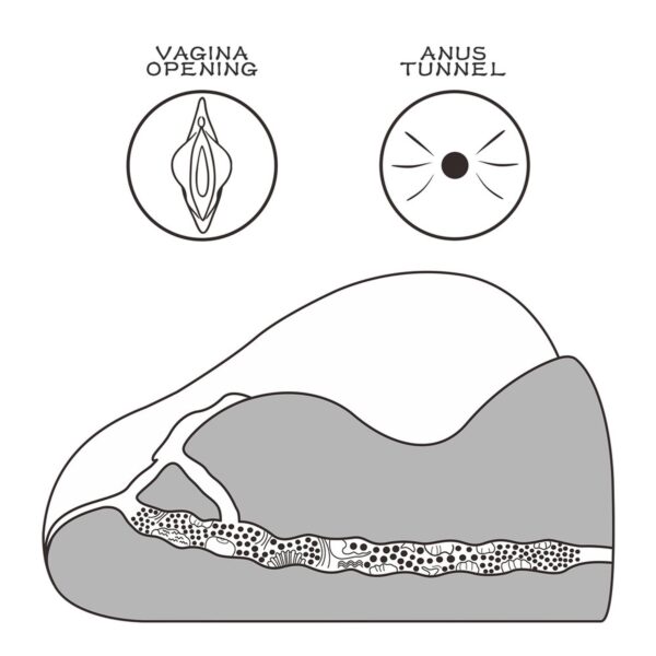 Pięknie zaprojektowany z ładnie rozłożoną pochwą i seksownymi różowawymi wargami sromowymi. Masturbator wykonany jest z ultra realistycznego materiału. Ciaśniutka szparka waginy oraz anus posiadają wewnątrz liczne prążki, które z dokładną precyzją czule wymasują penisa, dając uczucie prawdziwych doznań