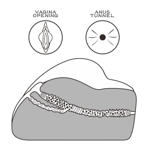 Pięknie zaprojektowany z ładnie rozłożoną pochwą i seksownymi różowawymi wargami sromowymi. Masturbator wykonany jest z ultra realistycznego materiału. Ciaśniutka szparka waginy oraz anus posiadają wewnątrz liczne prążki, które z dokładną precyzją czule wymasują penisa, dając uczucie prawdziwych doznań