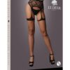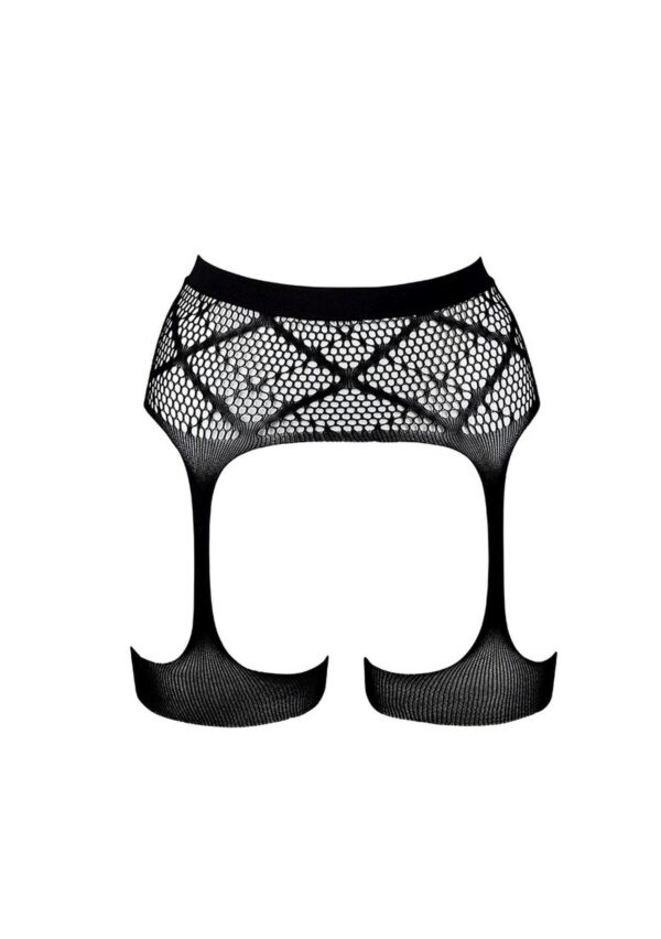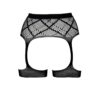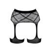 Pas do pończoch z siateczki z paskami w stylu prążkowanym i dołączonymi opaskami na nogi. Pas idealnie pasuje na rozmiar S-XL. Stringi nie są dołączone do zestawu.