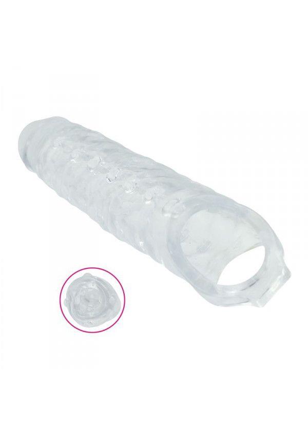 Nakładka przedłużająca z twardą końcówką. Bardzo duży rozmiar: długość 28 cm, średnica 5,5 cm. Miękki i wygodny w użyciu. Bez ftalanów.