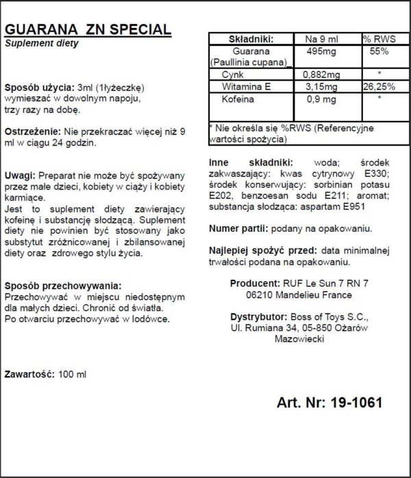 Ekstrakt z Guarany jest świetnym stymulatorem ogólnym. Poprawia ogólną kondycje fizyczną oraz stymuluje produkcję spermy. Trzy łyżki dziennie dają niewyczerpaną energie seksualną.