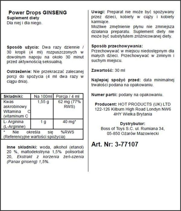 Wlej kilka kropli Power Ginseng Drops do zimnego napoju, a postawią Cię na wysokości zadania. Podstawowym składnikiem tych kropli jest żeńszeń, najstarszy i najbardziej znany chiński składnik. Słowo Ginseng z chińskiego oznacza cud świata. Roślina uznawana na całym świecie za leczniczą i jest stosowana w medycynie tradycyjnej. Roślina jest znana ze skutecznego, efektu energetycznego.
