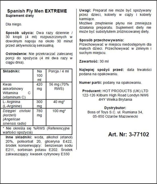 Krople Extreme Men Spanish Fly, mają także na celu zapewnić Ci szybszą regenerację po stosunku.