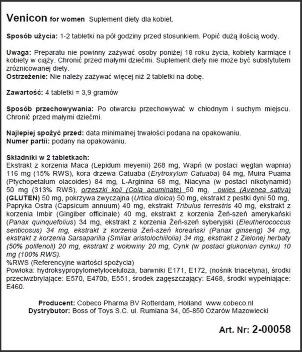 Venicon For Women wspomaga pożądanie i popęd seksualny.