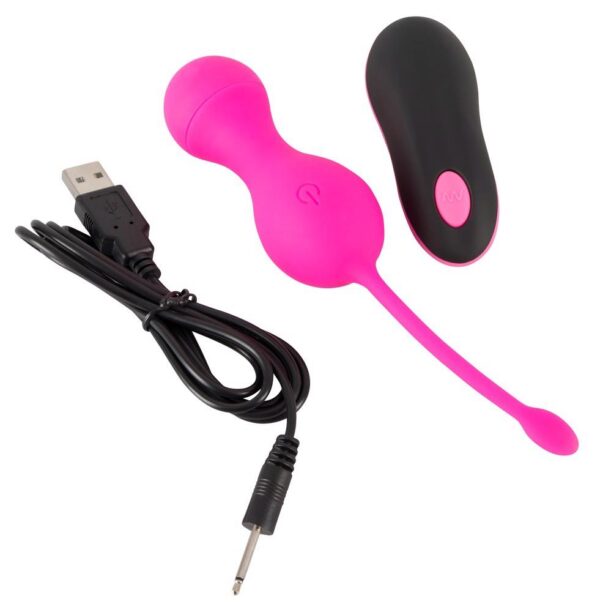 Ładowalny vibro-ball duo RC Love Balls by Sweet Smile z elastycznym paskiem powrotnym i 10 trybami wibracji. Możliwość sterowania za pomocą przycisku lub za pomocą pilota. Wodoodporny dla gorącej zabawy w wannie i pod prysznicem. Kabel USB w zestawie.
