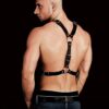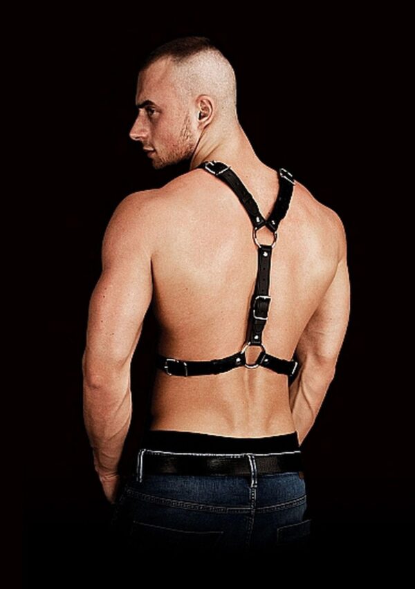 Ogromny pierścień na klatce piersiowej przyciąga oko błyszczącą czernią wykończoną wytrzymałymi przeszyciami! Strój z obu stron wykończony pierścieniami oraz skórzanymi pasami wysokiej jakości, okalającymi ramiona. Oba naramienne paski posiadają wytrzymałe zapięcia, gwarantujące idealne dopasowanie. Nie ma nic złego w byciu skrępowanym!