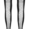 Nieprzezroczyste pończochy z uderzającym szewem sieci rybackiej z tyłu. Zintegrowana elastyczna taśma zapewnia antypoślizgowe dopasowanie.
