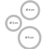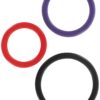 Super rozciągliwe pierścienie silikonowe w trzech rozmiarach (3,0 cm, 3,5 cm, 4,0 cm) zapewniają niekończące się kombinacje restrykcyjnej przyjemności. Myć wodą z mydłem po użyciu.