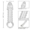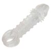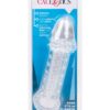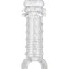 Indulge in you and your mutual satisfaction with the powerful Ultimate Extender male enhancer. While the closed-end sleeve suction and ribbed chamber thrill him, the added girth, thrilling studded texture and 2 inches of length will leave your lady shaking. The built-in scrotum strap and thick sleeve provided added erection support and increase stamina to prolong and intensify pleasure for any couple. Step up your pleasure and never settle for less when it comes to size, our super stretchy extender with supportive scrotum strap will have you and your lover craving more, more, more.Our super stretchy enhancer stretches to fit any size man. The Soft, stretchy TPE is unscented, phthalate free and maintenance free to keep your most sensitive spots, happy and healthy. Enjoy easy clean up with this maintenance free stimulator sleeve, simply wash with soap and warm water before and after each use. Use ample lubricant for easy insertion.