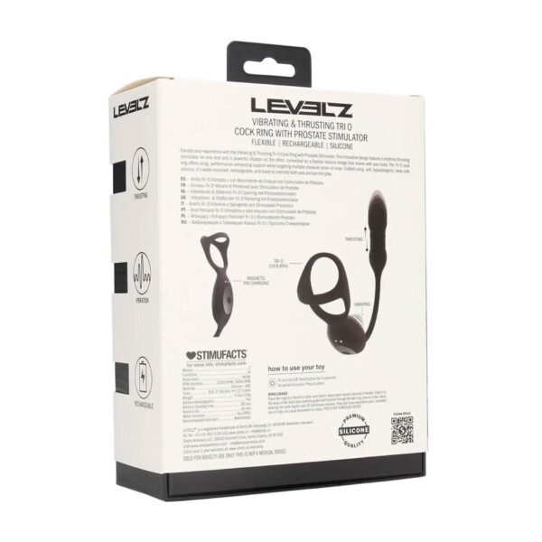 Vibrating and Thrusting Silicone Tri O Cockring with Prostate Stimulator – Black