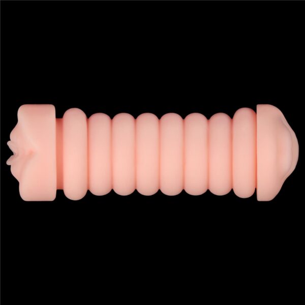 Na drugim końcu symuluje przejście odbytu z węższymi kanałami wypełnionymi wypustkami i spiralami, idealne dla mężczyzn poszukujących najlepszego orgazmu.