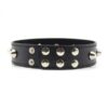 Obroża ze skóry z ćwiekami i kolcami. Dzikość skóry i chłód metalu razem: przyjemność i ból dla miłośników BDSM. Nie ma hamulców dzięki linii Toez4Lovers Fetish Art!