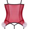 Wykonany z czerwonego materiału powernet i delikatnej koronki, miękki, elastyczny i wygodny w noszeniu.
